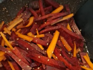 Kinpira!Sweet and savory Japanese stir-fry, traditionally with burdock root and carrot, right?