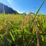 Unlike the dominant method with combine harvesters, we harvest rice plants (ears of rice) manually with sickles.
